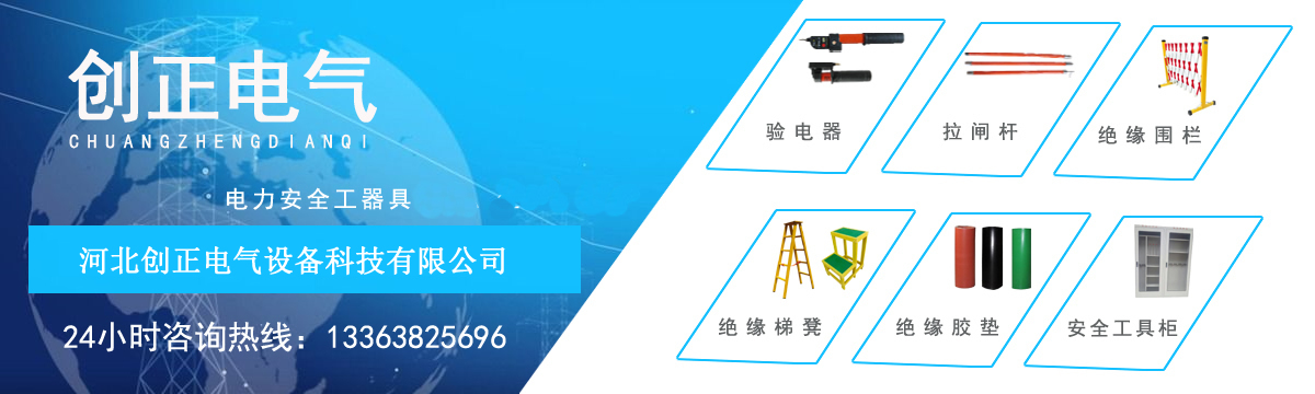 河北創(chuàng)正電氣設備科技有限公司主要經營產品包括:高壓驗電器、高壓接地線、高壓拉閘桿、絕緣橡膠墊、絕緣伸縮圍欄、絕緣梯、安全工具柜、絕緣凳、擋鼠板、安全警示帶、絕緣臺、安全帶、腳扣、安全帽、標識牌、絕緣手套、絕緣靴等電力安全工器具。公司以“服務電力系統,努力永無止境”為目標,以“人才就是生產力”為戰(zhàn)略,以經驗為依托,以理念為指導,以員工為基礎,以市場為支撐,貫徹“以顧客需求為上”的經營理念,以合格的質量,合理的價位,適應市場的需求。 [詳細介紹]